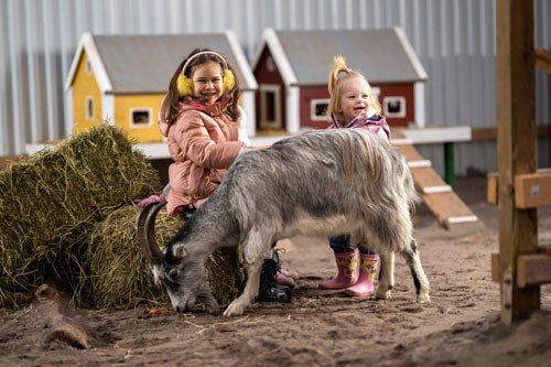 Hos os kan du kæle med geder og kaniner i vores minizoo. Kom her og læg din sut! Det er en god mulighed for børn at komme i kontakt med dyr på en naturlig måde. I minizooen håber vi, at flere mennesker vil opleve dyr og få en oplevelse og et godt minde med hjem.