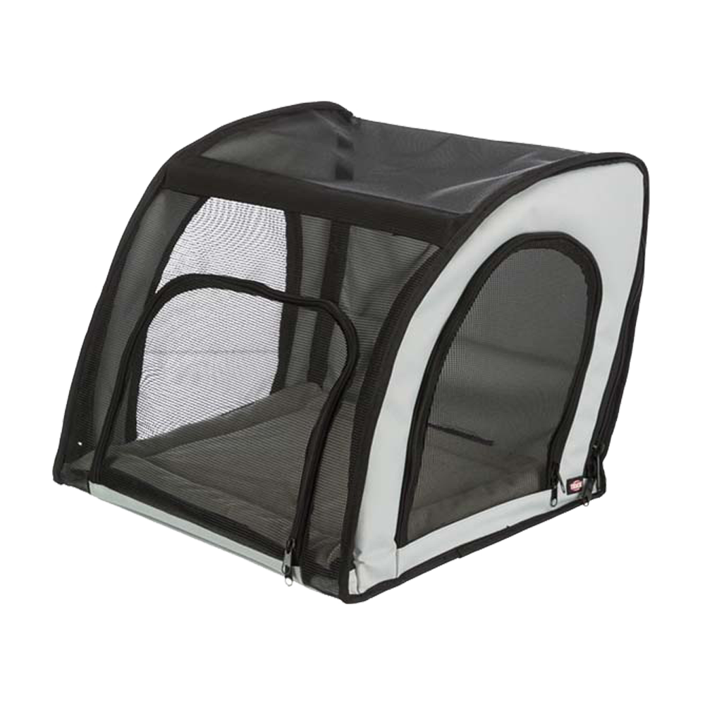En funktionel autostol, der giver små hunde et sikkert sted under bilture. Stolen kan åbnes både foran og i siden og er udstyret med stropper for sikker fastgørelse i bilen. Med en åbning til sikkerhedssele kan hunden spændes fast for øget sikkerhed. Mesh-indsatser giver god ventilation, og den vendbare hynde med skumfyld er behagelig og nem at håndvaske. Autostolen er foldbar og kan opbevares for at spare plads, når den ikke er i brug.