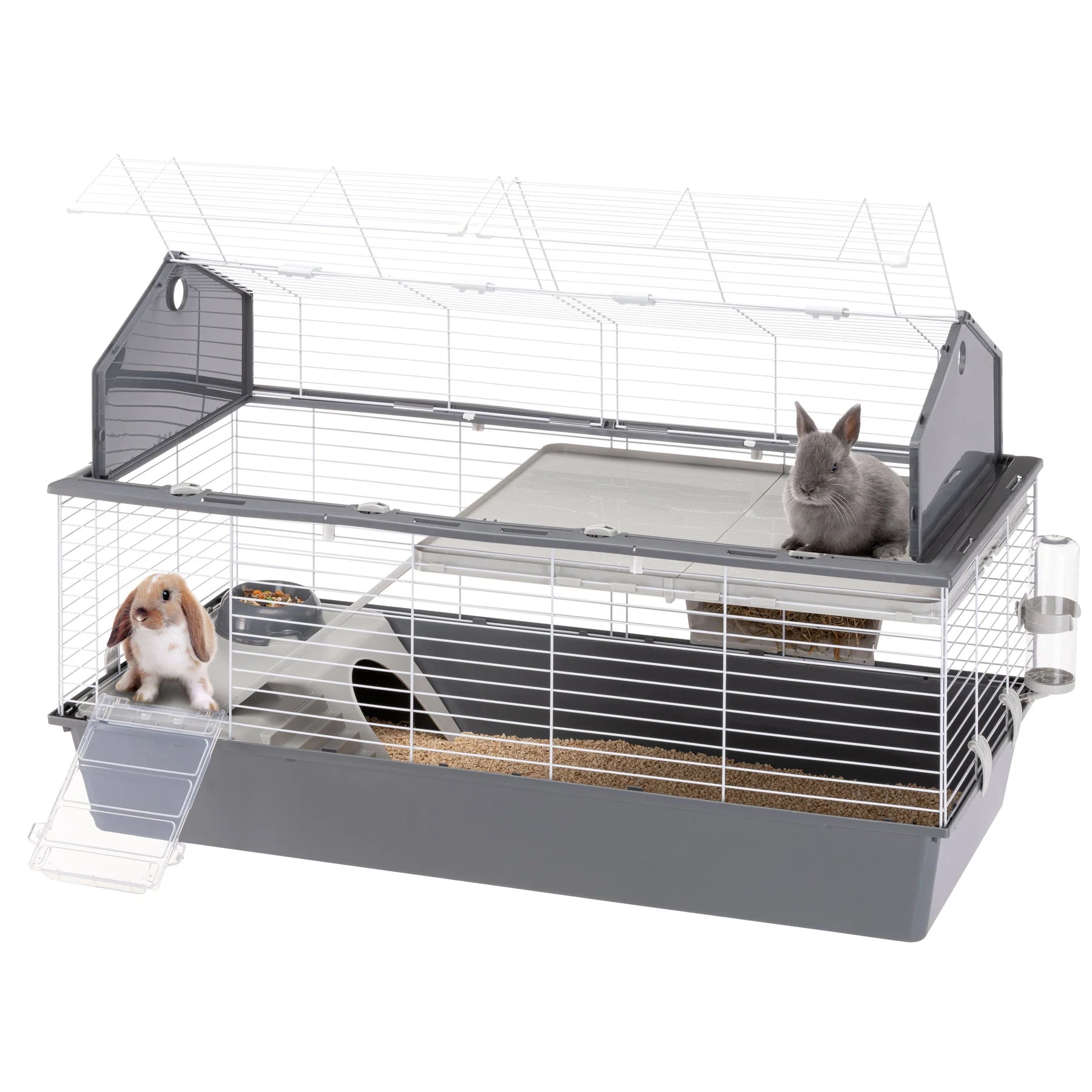 Taket kan öppnas helt för smidig daglig skötsel och rengöring och är utrustat med säkra låsklämmor. För mer grundlig rengöring kan botten och överdel separeras genom att lossa sidoklippen, och hela buren kan enkelt monteras isär vid behov.