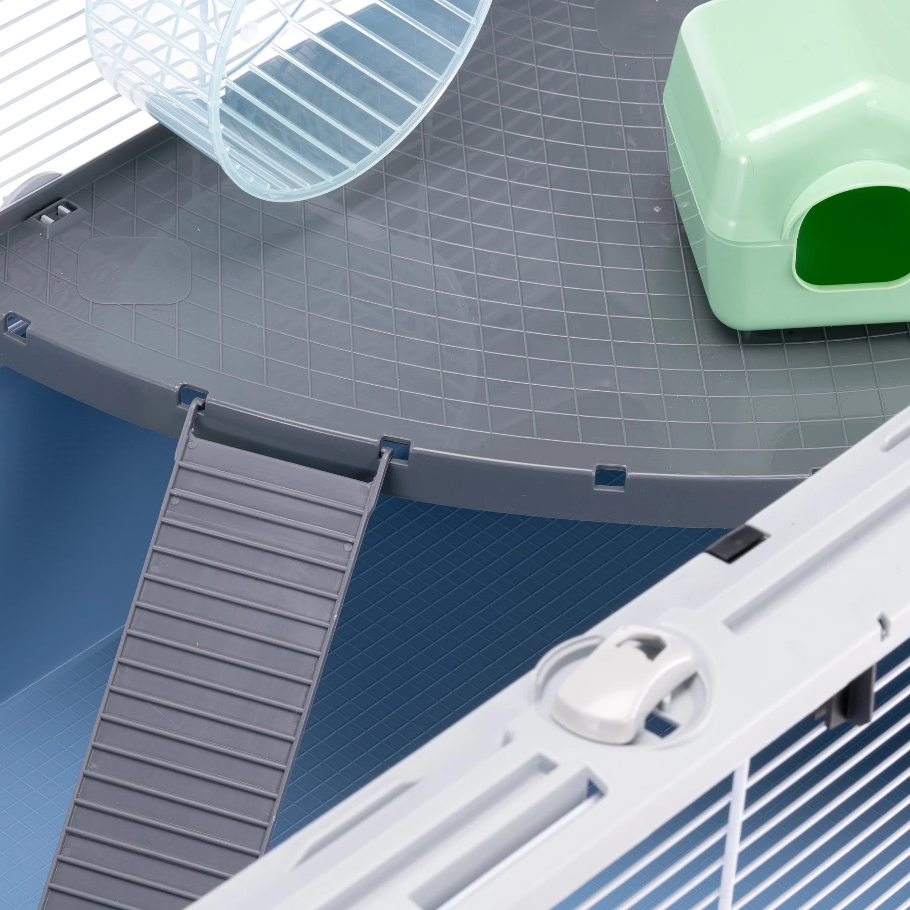 - Funktion: Criceti 80 är uppdelad i två nivåer med hjälp av en rymlig hylla och tillhörande stege. Den nedre delen fungerar som en lugn viloplats medan den övre nivån lämpar sig för mat, vatten och lek. Taket i metallnät kan öppnas helt och är försett med säkerhetslås för enkel åtkomst vid skötsel. Den löstagbara botten gör rengöringen snabb och smidig, och buren är dessutom förberedd för att kunna kopplas ihop med extra rör eller andra modulära hamsterhabitat.