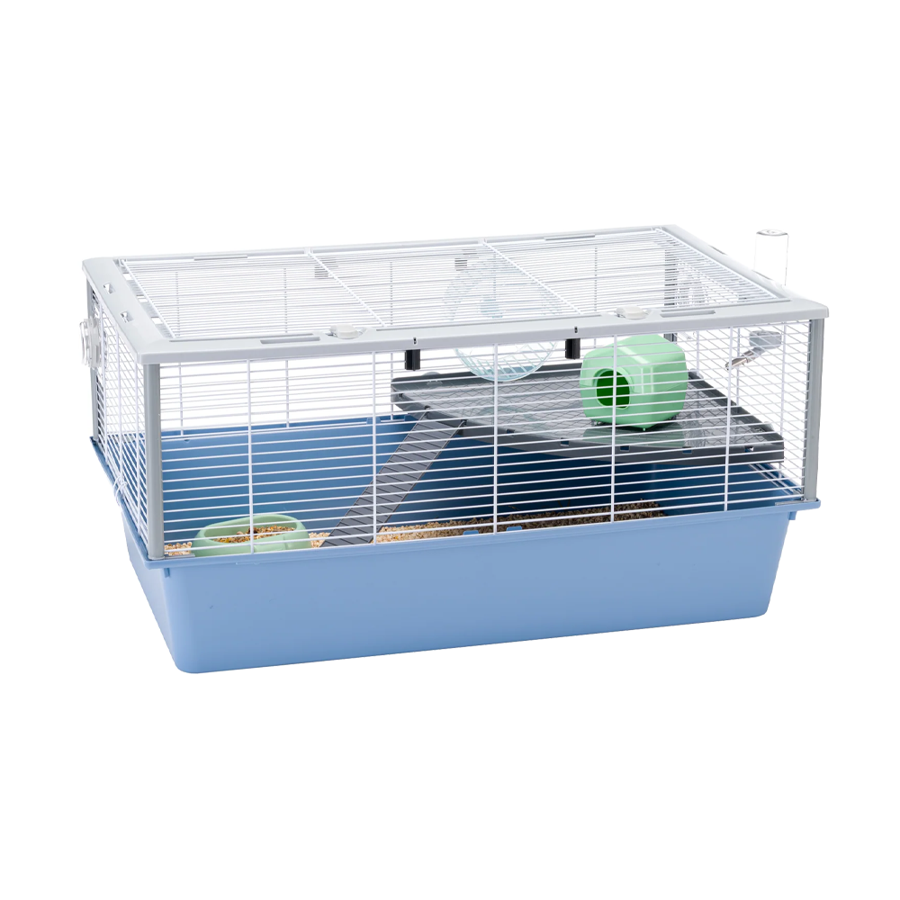 Criceti 80 är en rymlig och genomtänkt hamsterbur som ger ditt smådjur gott om utrymme för både vila och aktivitet. Konstruktionen är anpassad för att skapa en trygg och stimulerande miljö samtidigt som den är praktisk och lättskött för dig som djurägare.
