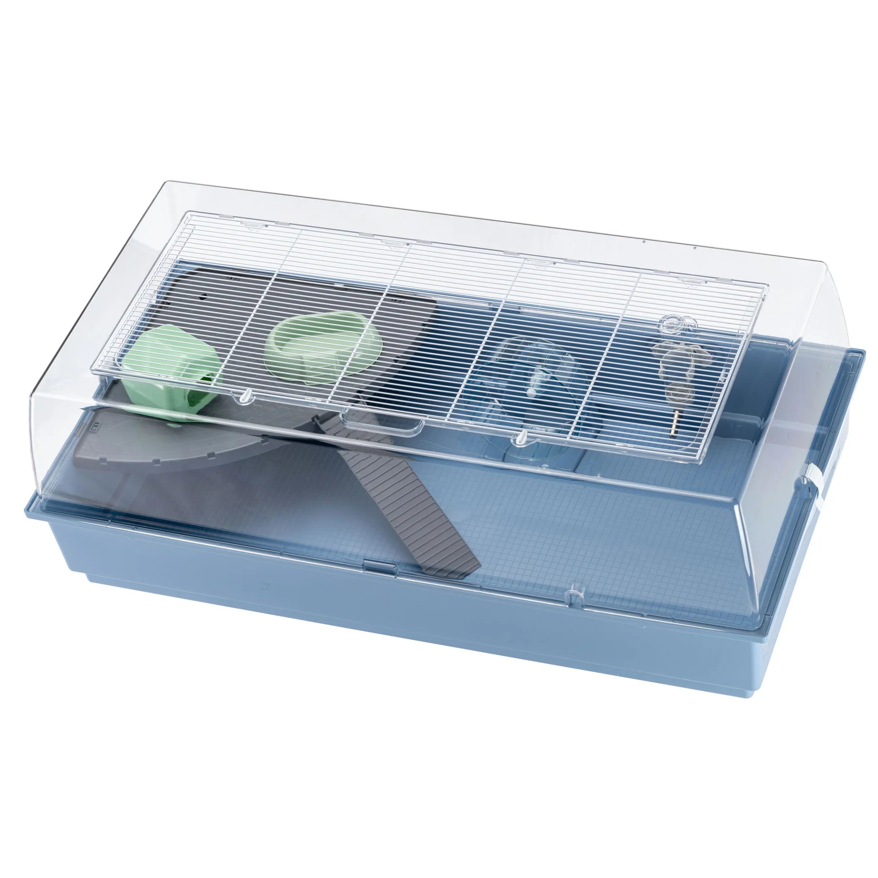 - Mått: Buren har yttermåtten 99 x 51,5 x 36 cm och erbjuder en mycket rymlig bottenyta som ger gott om plats för lek, grävande och vila. Den stabila plastbotten bidrar till trygghet och håller strö och sand på plats.
