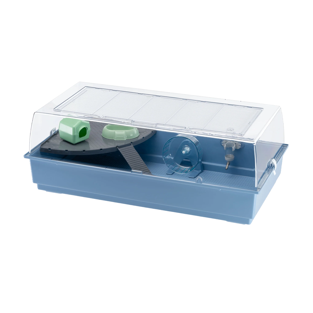 Duna Hamster Maxi är en extra rymlig och modulär bur för hamstrar och möss, framtagen för dig som vill erbjuda maximal komfort, rörelsefrihet och en stimulerande vardag. Den generösa storleken kombinerat med smart konstruktion gör den till ett utmärkt val för både aktiva djur och djurägare som värdesätter enkel skötsel.