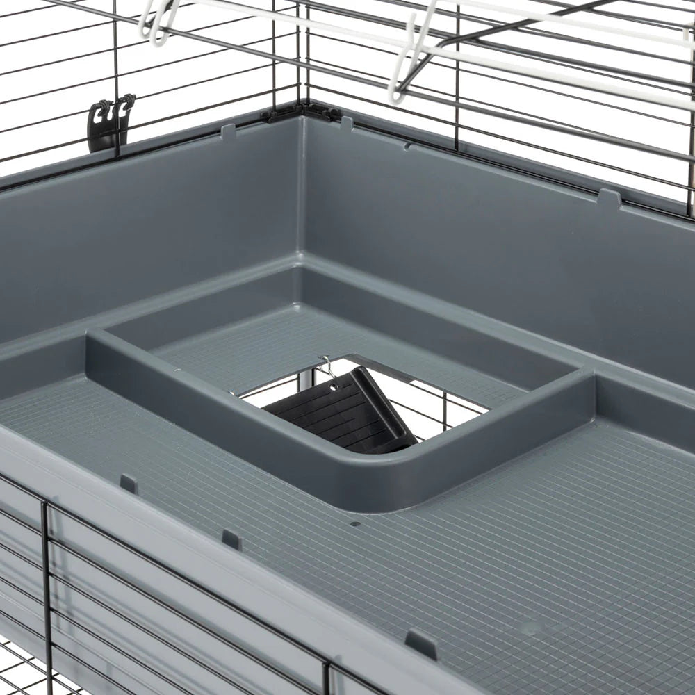 Rabbit 120 Double är en rymlig och genomtänkt tvåvåningsbur för kaniner, utformad för att ge gott om plats, rörelsefrihet och hög komfort. Den generösa boytan är fördelad på två plan som binds samman med en stabil stege, vilket gör buren väl lämpad för en eller flera kaniner samtidigt. Buren levereras komplett med ett stadigt metallstativ med hjul, vilket gör den enkel att flytta vid behov.