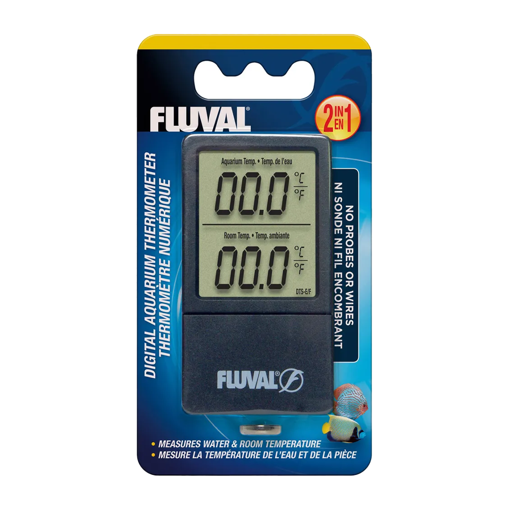 Fluvals 2-i-1 trådløse digitale termometer gør det nemt at overvåge både vand- og rumtemperatur på samme tid - uden ledninger eller sonder. Det store, klare LCD-display viser temperaturen med høj nøjagtighed og giver dig mulighed for nemt at skifte mellem Celsius og Fahrenheit. Enheden fastgøres nemt på ydersiden af akvarieglasset og er egnet til både ferskvand og saltvand.