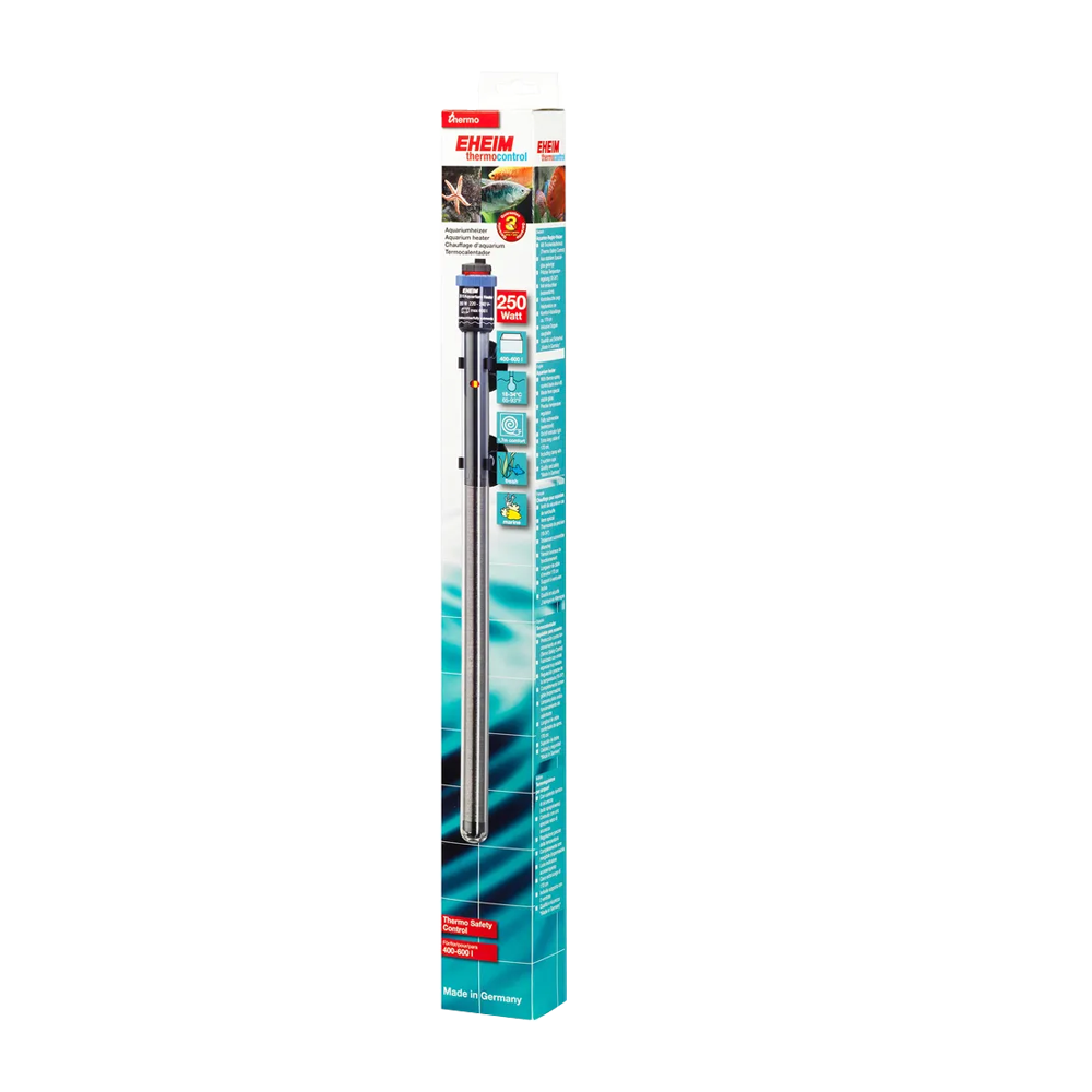 Eheim Jäger 250 W är en högpresterande doppvärmare som ger exakt temperaturkontroll och jämn värmefördelning i akvariet. Tillverkad av hållbart säkerhetsglas som tål snabba temperaturförändringar, vilket gör den säker att använda i både söt- och saltvattensakvarier.