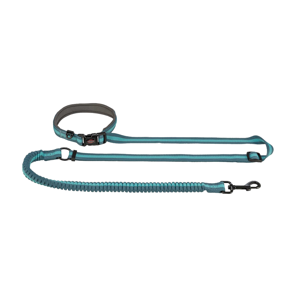 En alsidig joggingline, der kan bæres rundt om kroppen eller bruges som en almindelig håndline. Ekspansionslinen dæmper ryk under pludselige træk og giver en mere behagelig oplevelse for både hund og ejer. Linen er fuldt justerbar og udstyret med et polstret håndtag med krog og en praktisk løkke til fastgørelse af et ID-mærke eller en blinklys.