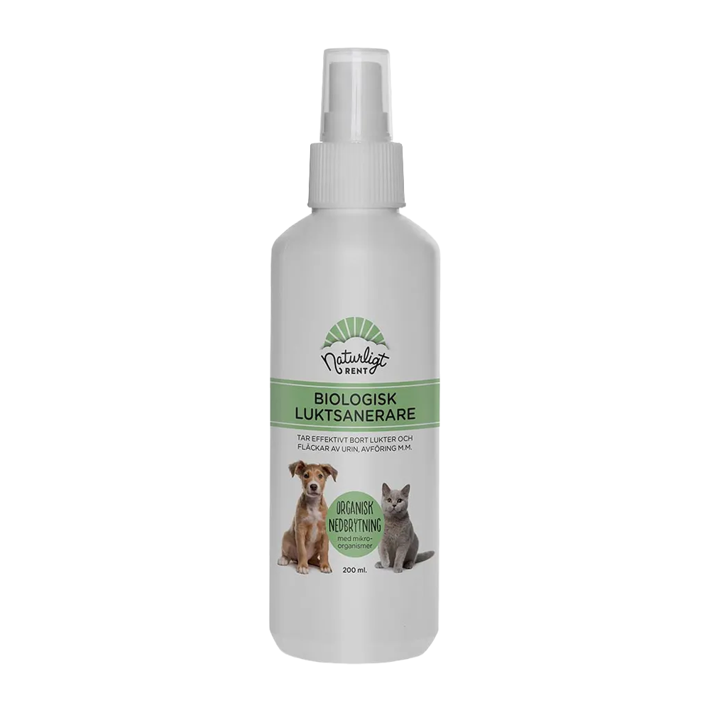 Luktsanerare Biologisk SE är en kraftfull men skonsam spray som effektivt bryter ner och eliminerar dålig lukt med hjälp av naturliga mikroorganismer. Produkten arbetar inte genom att maskera lukten, utan genom att angripa själva orsaken genom att bryta ner organiskt material som urin, proteiner, fett, kolhydrater och cellulosa. Den unika sammansättningen innehåller fem olika stammar av specialiserade mikroorganismer som tillsammans ger en mycket hög effektivitet.