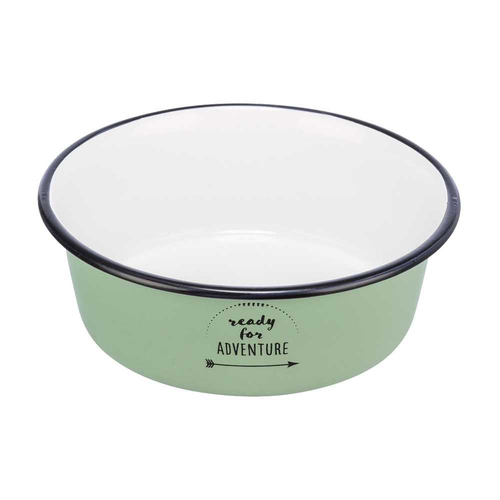 En moderne skål i emalje og rustfrit stål, der kombinerer holdbarhed med design. Udstyret med skridsikre silikoneprikker, der giver stabilitet og forhindrer skålen i at glide under måltidet.