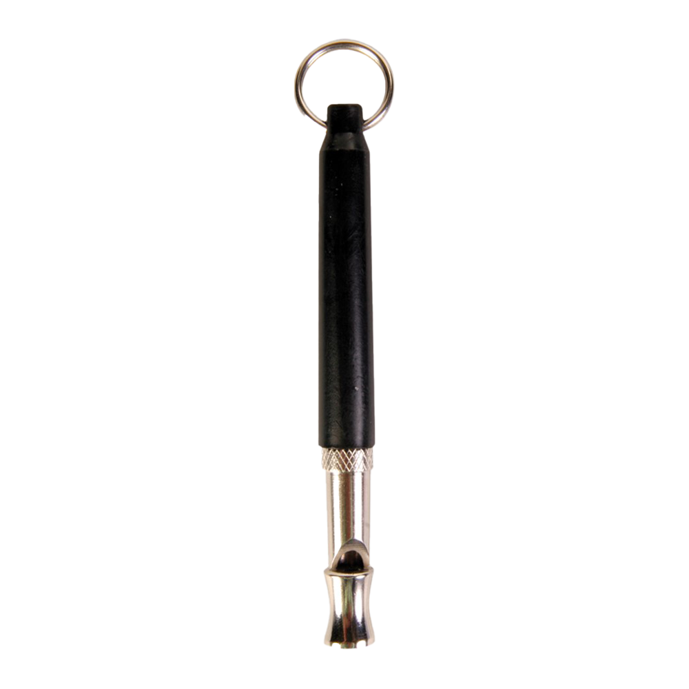 En kompakt supersonisk fløjte lavet af metal og plastik, designet til at give signaler, der er vanskelige for mennesker at opfatte, men tydelige for hunde. Den har en justerbar lydfrekvens, der gør det muligt at tilpasse signalet til hundens hørelse og træningsbehov.
