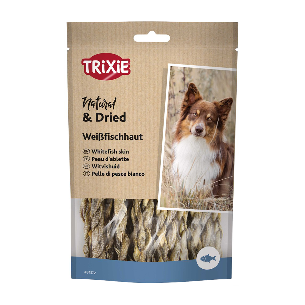 - Egenskaper: Tillverkade av torkat skinn från vit fisk med naturligt innehåll av Omega-3 och Omega-6 fettsyror som bidrar till smaklighet och ett uppskattat snacks. Singelprotein gör godiset extra lämpligt för hundar med känslighet mot andra proteinkällor.