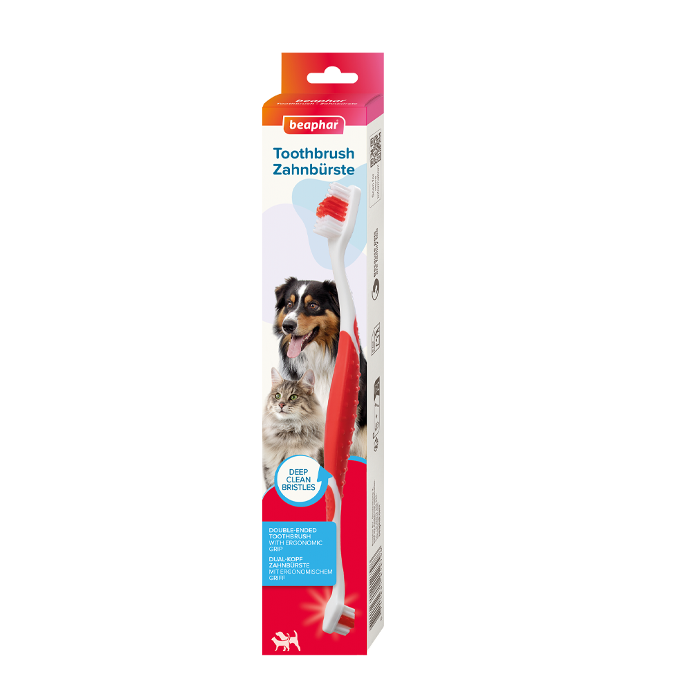 Beaphars dubbelsidiga tandborste gör tandborstningen enkel för både hundar och katter. Med mjukt ergonomiskt handtag och borst i två storlekar kommer du åt även svåråtkomna tänder för en bättre munhygien.
