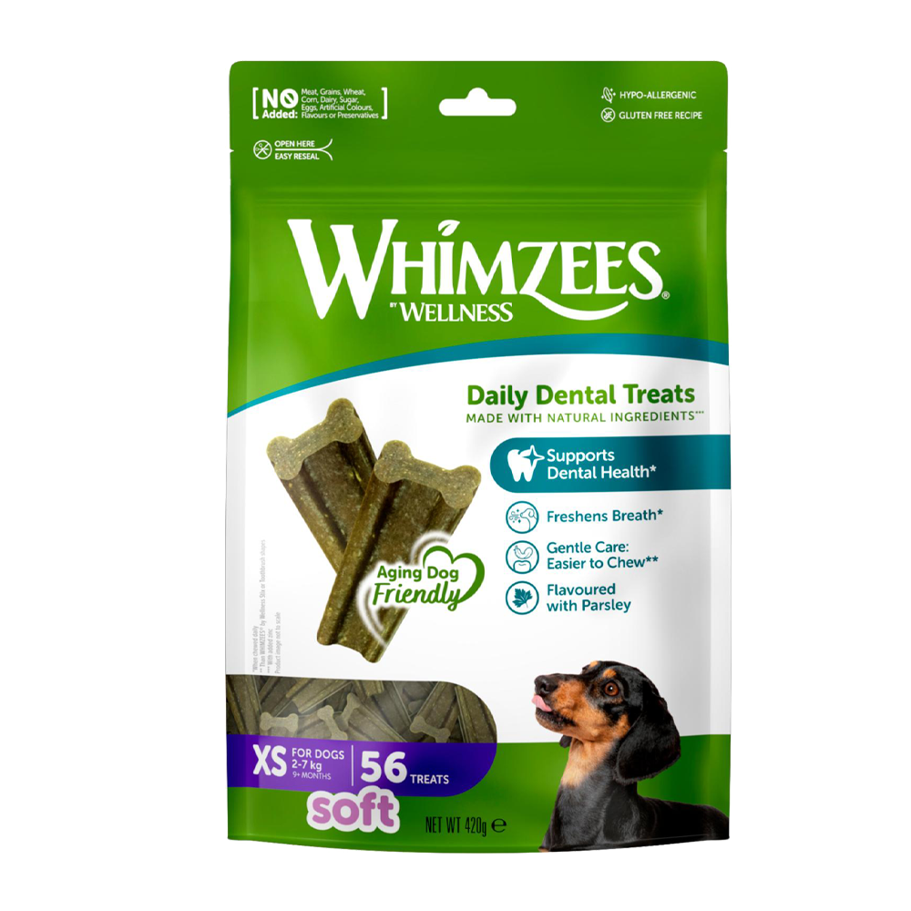 Whimzees Soft XS – Blødere tyggegodbidder til følsomme og ældre hunde.